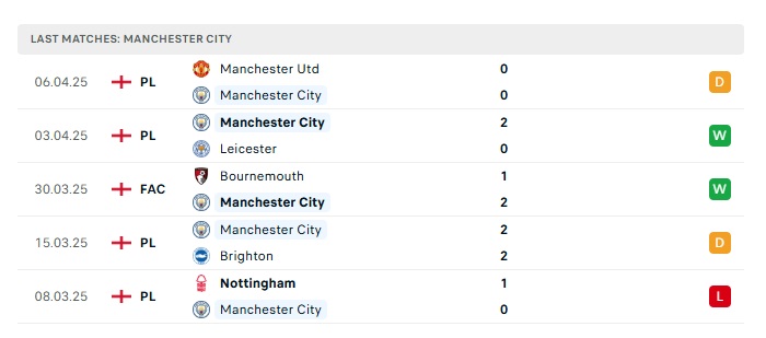 - Phong độ gần đây Man City