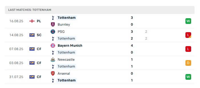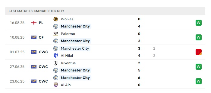 Rõ ràng, phong độ trong giai đoạn tiền mùa giải của Man City tốt hơn hẳn so với đối thủ của mình. Tính trong 5 trận gần nhất của Man City, họ được ghi nhận đã có 4 chiến thắng và chỉ thua 1 trận. Trong khi đó thì Tottenham chỉ thắng 2, hòa 1 và thua 2 trong 5 trận gần nhất bao gồm cả vòng 1 mùa 25/26 này. Như vậy khi xét về chuyên môn, đội chủ sân Etihad tự tin sẽ đánh bại đối thủ một cách triệt để.