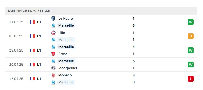 - Phong độ gần đây Marseille