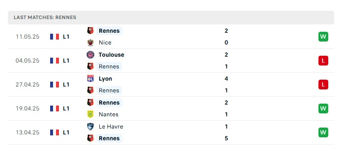 - Phong độ gần đây Rennes