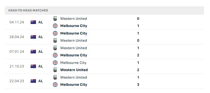 - Kèo tỷ số H2 Melbourne City vs Western United: 1-1