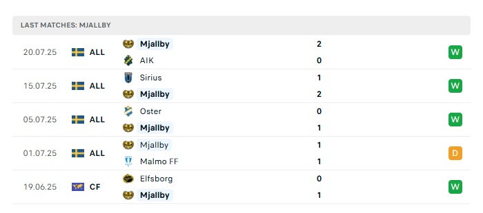 Phong độ gần đây Mjallby AIF  vs Sirius