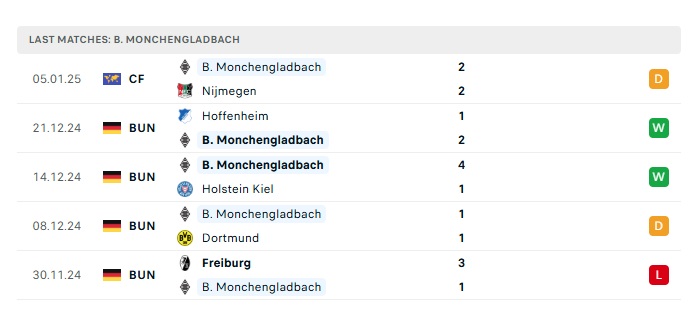 Nhìn vào sự chênh lệch lớn giữa hai đội, Hùm Xám vừa qua còn có phong độ thi đấu hoàn toàn áp đảo đối thủ Monchengladbach. Theo ghi nhận, 8 trận đấu gần nhất của đội khách, họ đã có cho mình 5 thắng, 1 hòa và chỉ thua 2. Trong khi đó thì Monchengladbach đang chỉ thắng 2, hòa 1 và thua 1 trong 4 vòng gần nhất. Vậy thì việc đội khách có chiến thắng là kết quả hoàn toàn dễ hiểu.