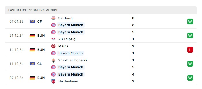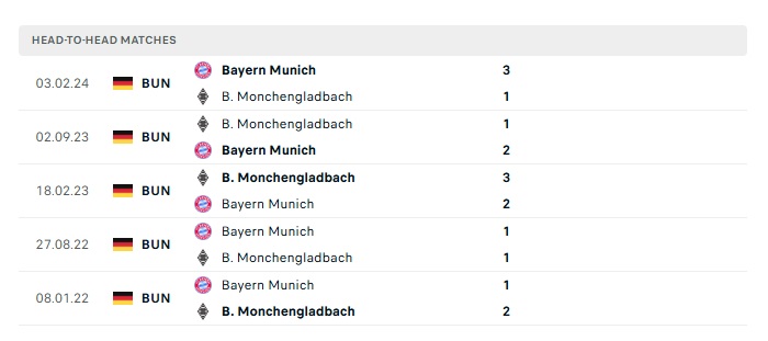 Phong độ gần đây Monchengladbach vs Bayern Munich