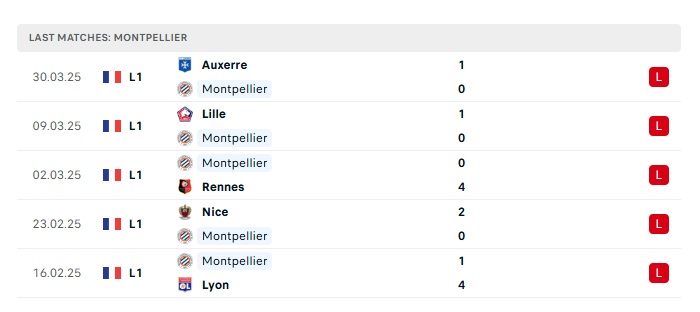 - Phong độ gần đây Montpellier
