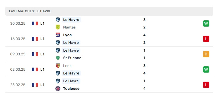 - Phong độ gần đây Le Havre