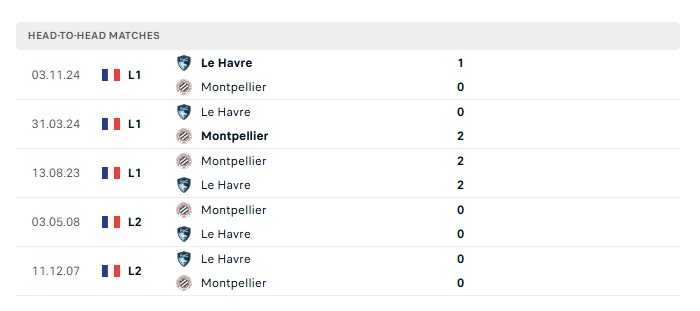 Lịch sử đối đầu Montpellier vs Le Havre