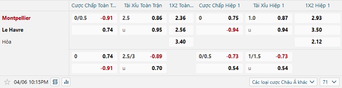 Soi kèo châu Á, kèo Montpellier vs Le Havre