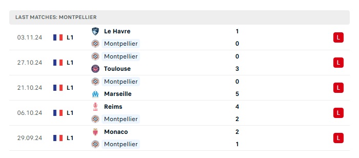 • Kèo tỷ số H2 Montpellier vs Stade Brestois: 0-2