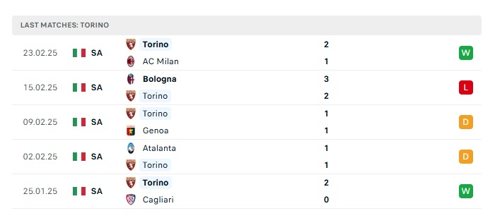 Tất nhiên, với một cái tên đã buông xuôi như Monza thì việc họ có phong độ kém cỏi cũng rất dễ hiểu. Trong 10 trận đấu đã qua của đội chủ nhà, họ chỉ có 1 hòa, 1 thắng và còn lại là cả 8 trận toàn thua. Trong khi đó thì Torino cũng không thực tốt nhưng họ vẫn có 6 hòa, 2 thắng, 1 thua trong 9 trận gần nhất. Như vậy việc đội khách có 3 điểm trong ngày thi đấu hôm nay là kết quả rất dễ đoán.
