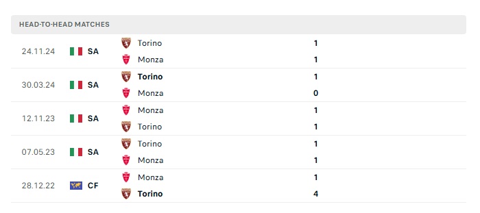 - Kèo tỷ số H2 Monza vs Torino: 0-2