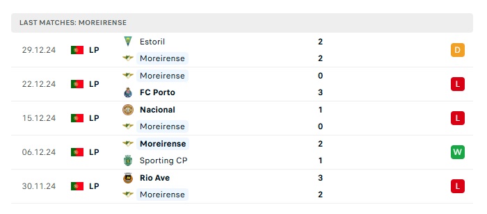 Theo ghi nhận trong thời gian qua, phong độ thi đấu của Moreirense cũng không thực sự tốt so với mong đợi từ người hâm mộ. Tính trong 9 trận đấu gần nhất, Moreirense đang chỉ thắng 3, hòa 1 và còn lại là 4 thua. Tuy nhiên, AVS thậm chí còn tệ hơn rất nhiều khi không thắng trong 10 trận liên tiếp với 5 hòa và 5 thua. Do đó nếu thi đấu đúng sức và đủ quyết tâm, Moreirense hoàn toàn đủ khả năng có cho mình 3 điểm trước đối thủ với cách biệt từ 2 bàn trở lên.