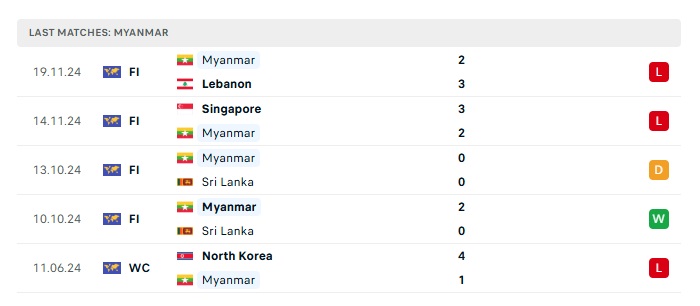 - Phong độ gần đây Myanmar