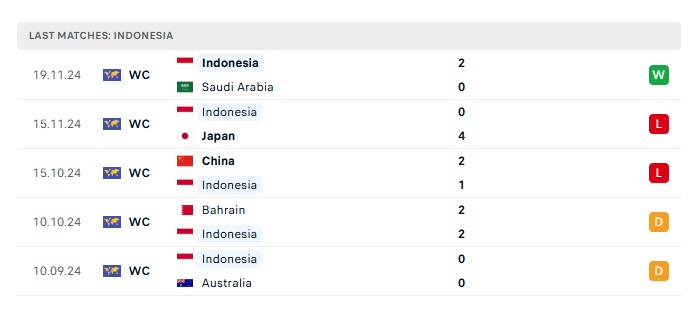 - Phong độ gần đây Indonesia
