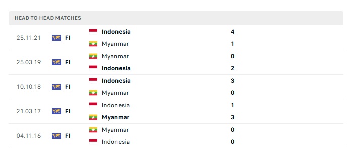 Tất nhiên, Myanmar từ rất lâu đã luôn là một kẻ lót đường tại giải đấu mà họ tham dự và năm nay cũng không ngoại lệ. Theo ghi nhận trong 10 trận gần nhất của quốc gia này trên toàn đấu trường, họ chỉ thắng 1, hòa 2 và thua đến 7. Trong khi đó thì Indonesia dù còn nhiều bất cập nhưng họ dần có những kết quả tích cực với 2 thắng, 3 hòa và chỉ thua 2 trong 7 trận đấu gần nhất. Như vậy thì đội khách ngày hôm nay được tin rằng sẽ có ít nhất là 1 chiến thắng tối thiểu trước đối thủ.