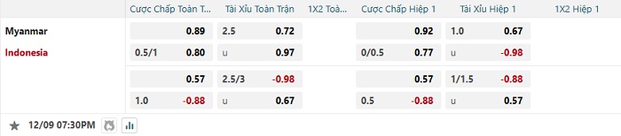 Bảng tỷ lệ kèo bóng đá Myanmar vs Indonesia