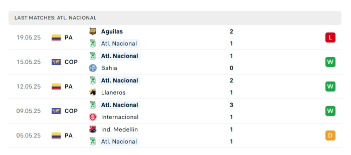 - Phong độ gần đây Atletico Nacional
