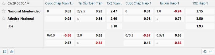 - Kèo tỷ số H1 Nacional vs Atletico Nacional: 0-0