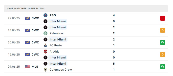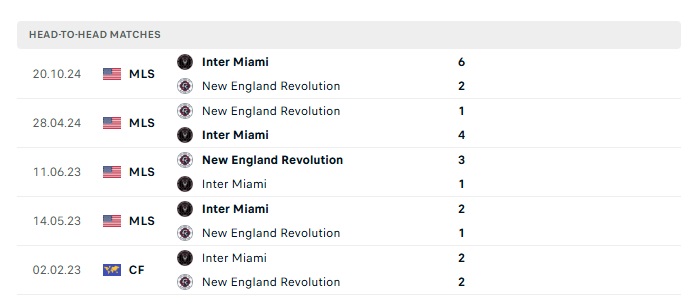 Hiện tại, nếu tính riêng tại MLS thì thành tích thi đấu của chủ nhà New England có phần kém hơn đối thủ. Bởi tính trong 5 vòng gần nhất, New England chỉ có được 1 chiến thắng, 2 hòa và còn lại 2 trận thua. Trong khi đó thì Miami đang có 2 chiến thắng, 2 hòa và 1 thua trong 5 trận gần nhất. Do đó, dù có tâm lý không tốt thì khả năng rất cao Miami vẫn sẽ có được cho mình 1 điểm trong ngày thi đấu hôm nay.