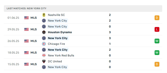 - Phong độ gần đây New York City