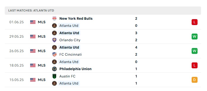 - Phong độ gần đây Atlanta United
