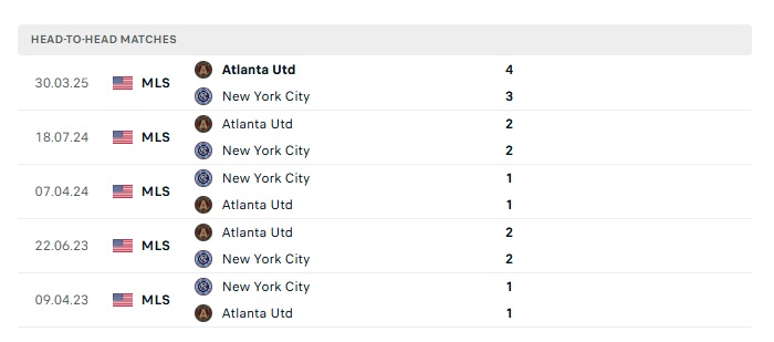 Lịch sử đối đầu New York City vs Atlanta United