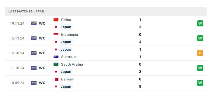 Phong độ gần đây Nhật Bản vs Bahrain