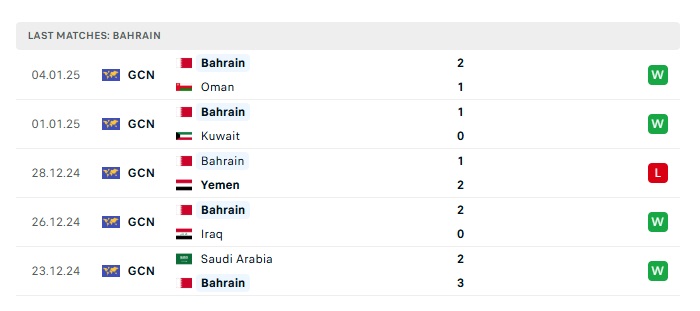 - Phong độ gần đây Bahrain
