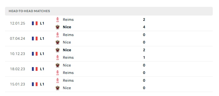 - Kèo tỷ số H2 Nice vs Stade Reims: 1-0