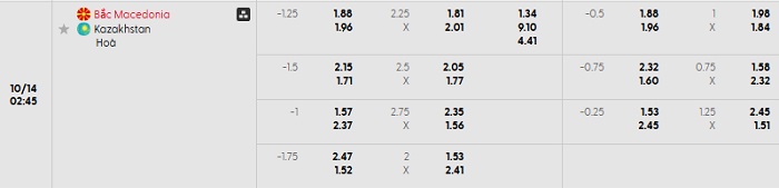 Bảng tỷ lệ kèo bóng đá North Macedonia vs Kazakhstan