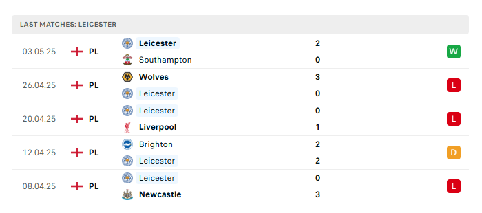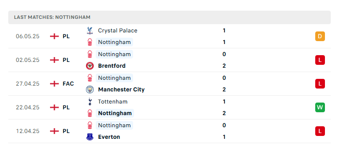 Phong độ gần đây Nottingham Forest vs Leicester City