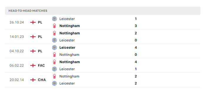 Lịch sử đối đầu Nottingham Forest vs Leicester City