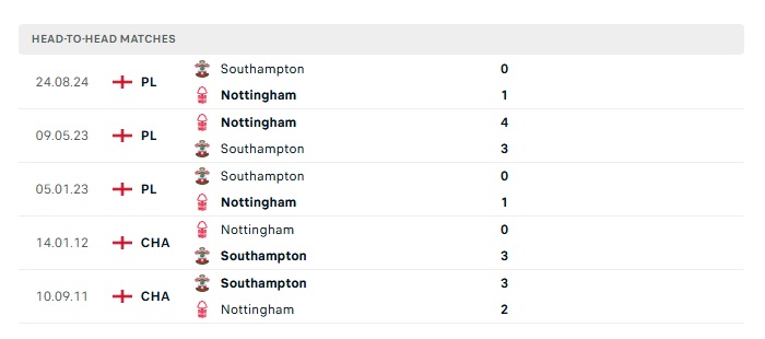 Lịch sử đối đầu Nottingham Forest vs Southampton