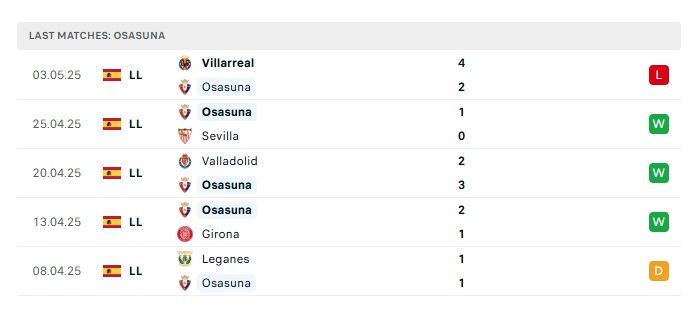 • Phong độ gần đây Osasuna