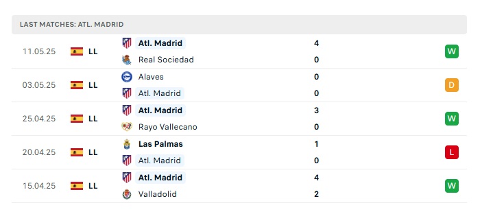 • Phong độ gần đây Atletico Madrid