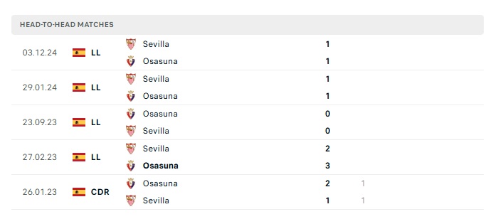 Lịch sử đối đầu Osasuna vs Sevilla