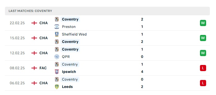 Rõ ràng, dựa vào các thống kê được đưa ra, Coventry chắc chắn sẽ có cho mình 1 chiến thắng trọn vẹn tại sân khách. Trong 4 lần liên tiếp gặp nhau vừa qua, Coventry đã toàn thắng cả 4 lần liên tiếp trước đối thủ. Ngoài ra thì Coventry trong 3 trận đấu gần nhất trên sân khách, họ cũng đã toàn thắng cả 3. Do đó, kèo châu Âu trận đấu hôm nay sẽ khép lại với đội khách là lựa chọn đầu tư an toàn nhất.
