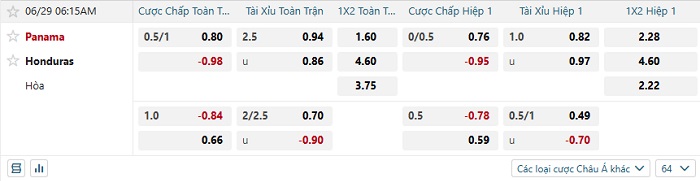 Theo ghi nhận, nhà cái lúc này đang niêm yết cho Panama mức chấp -3/4 và khả năng họ thắng kèo trước đối thủ đang rất cao. Nên biết rằng trong 4 trận đấu gần nhất của Panama, họ đã toàn thắng kèo cả 4. Trong khi đó thì Honduras trong 8 trận đã qua, họ chỉ thắng kèo 2, thua 6. Do đó, kèo châu Á hôm nay sẽ chứng kiến Panama là lựa chọn đầu tư an toàn nhất dành cho người hâm mộ.
