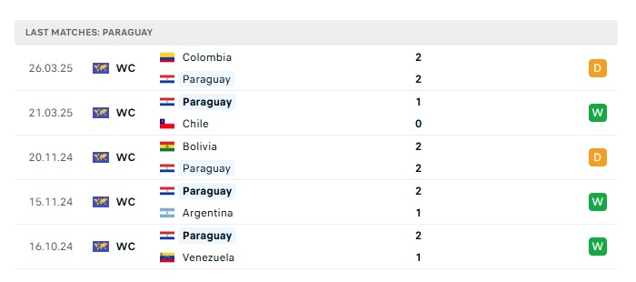 • Phong độ gần đây Paraguay