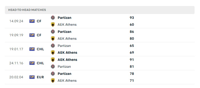 Tuy nhiên, Partizan cũng nên phải chú ý việc họ đang có phong độ thi đấu rất tệ trong thời gian qua. Trong 6 trận gần nhất, Partizan lúc này đang chỉ có 2 thắng và còn lại là 4 trận toàn thua. Trong khi đó thì AEK lại bất bại 6 trận liên tiếp vừa qua với 4 thắng và 2 hòa. Do đó, việc đội chủ nhà giành chiến thắng với biệt từ 2 bàn trở lên cũng sẽ rất khó để xảy ra.