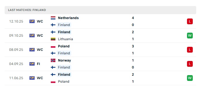 • Phong độ gần đây Phần Lan