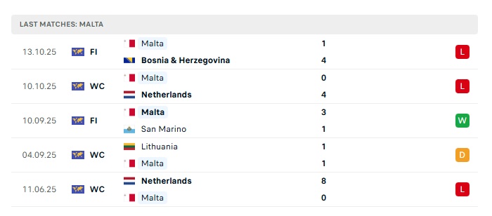 • Phong độ gần đây Malta
