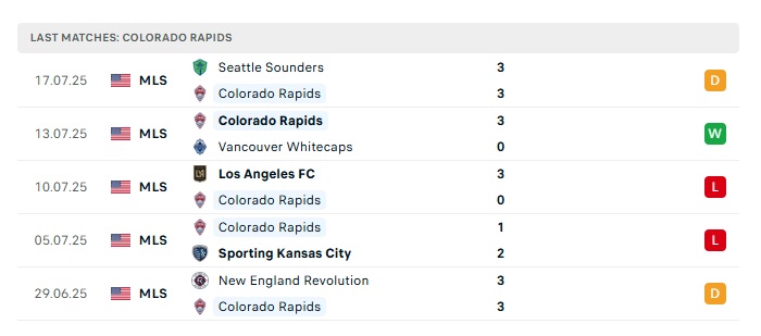 Phong độ gần đây Philadelphia Union vs Colorado Rapids