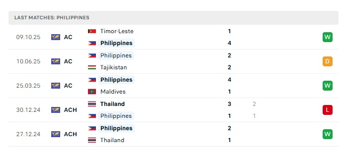 Nên biết rằng, phong độ thi đấu của hai đội trong thời gian qua đang có kết quả trái ngược nhau hoàn toàn. Trong 7 trận đấu gần nhất của Đông Timo, họ đã thắng 1 và còn lại là cả 6 trận toàn thua. Trong khi đó thì Philippines, họ đã thắng 3, hòa 1 và chỉ thua 1 trong 5 trận gần nhất của mình. Do đó, đội chủ nhà ngày hôm nay sẽ cực kỳ tự tin để có được 3 điểm hoàn toàn trọn vẹn.