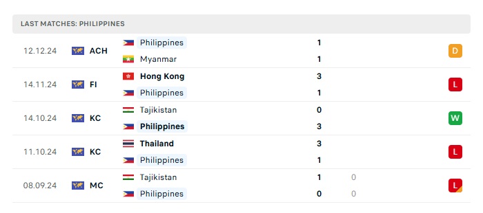 - Phong độ gần đây Philippines
