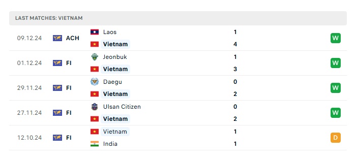 - Phong độ gần đây Việt Nam