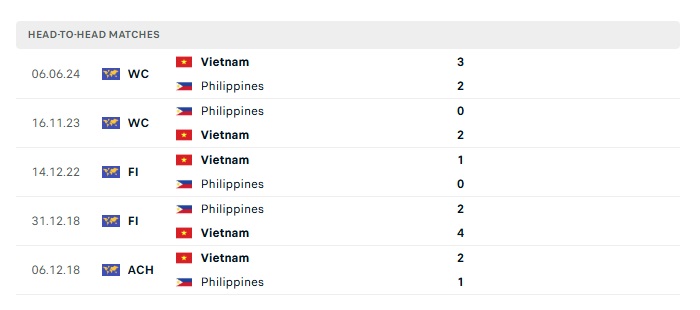 Phong độ gần đây Philippines vs Việt Nam