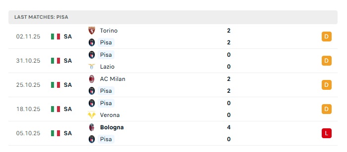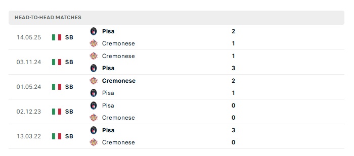 Hãy nhớ rằng kể từ khi mùa giải mới bắt đầu, Pisa chưa một lần nào giành chiến thắng. Tính trong 10 trận đấu đã qua của đội chủ nhà, họ chỉ có 4 trận hòa và còn lại là cả 6 trận đấu toàn thua. Trong khi đó thì Cremonese lúc này đã có được cho mình 3 thắng, 5 hòa và thua 2 trong 10 trận gần nhất. Như vậy thì rất rõ ràng, không chỉ hòa mà chiến thắng cũng đang nằm trong tay của đội khách.