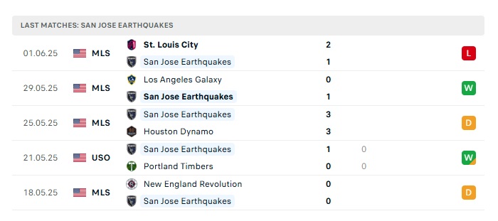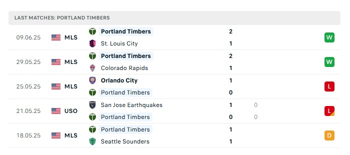 Phong độ gần đây Portland Timbers vs San Jose EQ