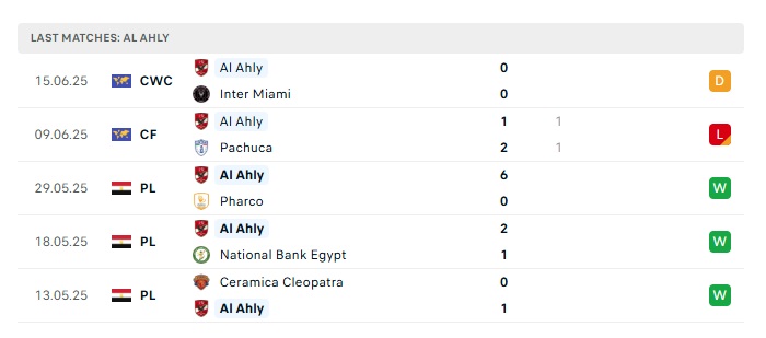 - Phong độ gần đây Ahly Cairo